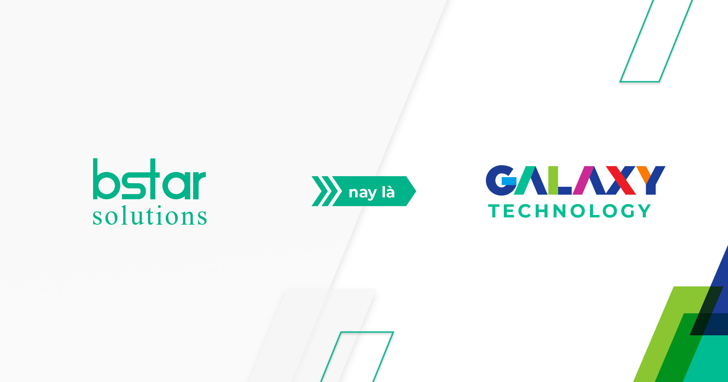 Đặc biệt, logo mới cũng được đồng nhất theo quy chuẩn nhận diện thương hiệu của Galaxy, riêng cụm chữ “Technology” được giữ nguyên màu xanh nhận diện của logo BStar Solutions (cũ) nhằm thể hiện sự kế thừa, trân trọng và cam kết phát huy những thành tựu và giá trị nền tảng của BStar Solutions trong hơn 8 năm qua.